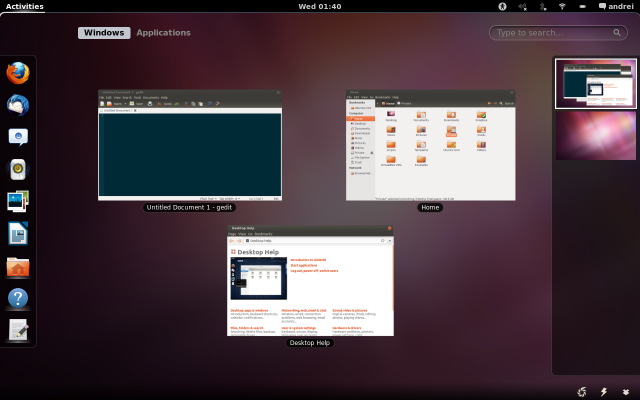 Minusta Unity on lähellä parasta, mitä Ubuntulle on tapahtunut ikinä. Ohjelmien haku Dashista hakkaa menut ja valikot. Ohjelmasta ei tarvitse muistaa kuin pari alkukirjainta.